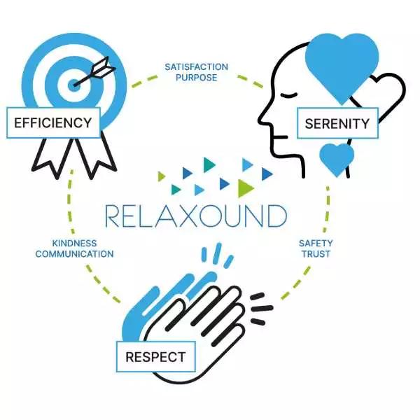 Vi har defineret tre kerneværdier, så vores FEEL SOUND-princip afspejles i vores daglige handlinger: Ro, respekt og effektivitet. De minder os om, hvad der er vigtigt for os, og hvad vi står for. Hvert Relaxound-produkt skal måles op mod dem, ligesom vores handlinger, hver dag.