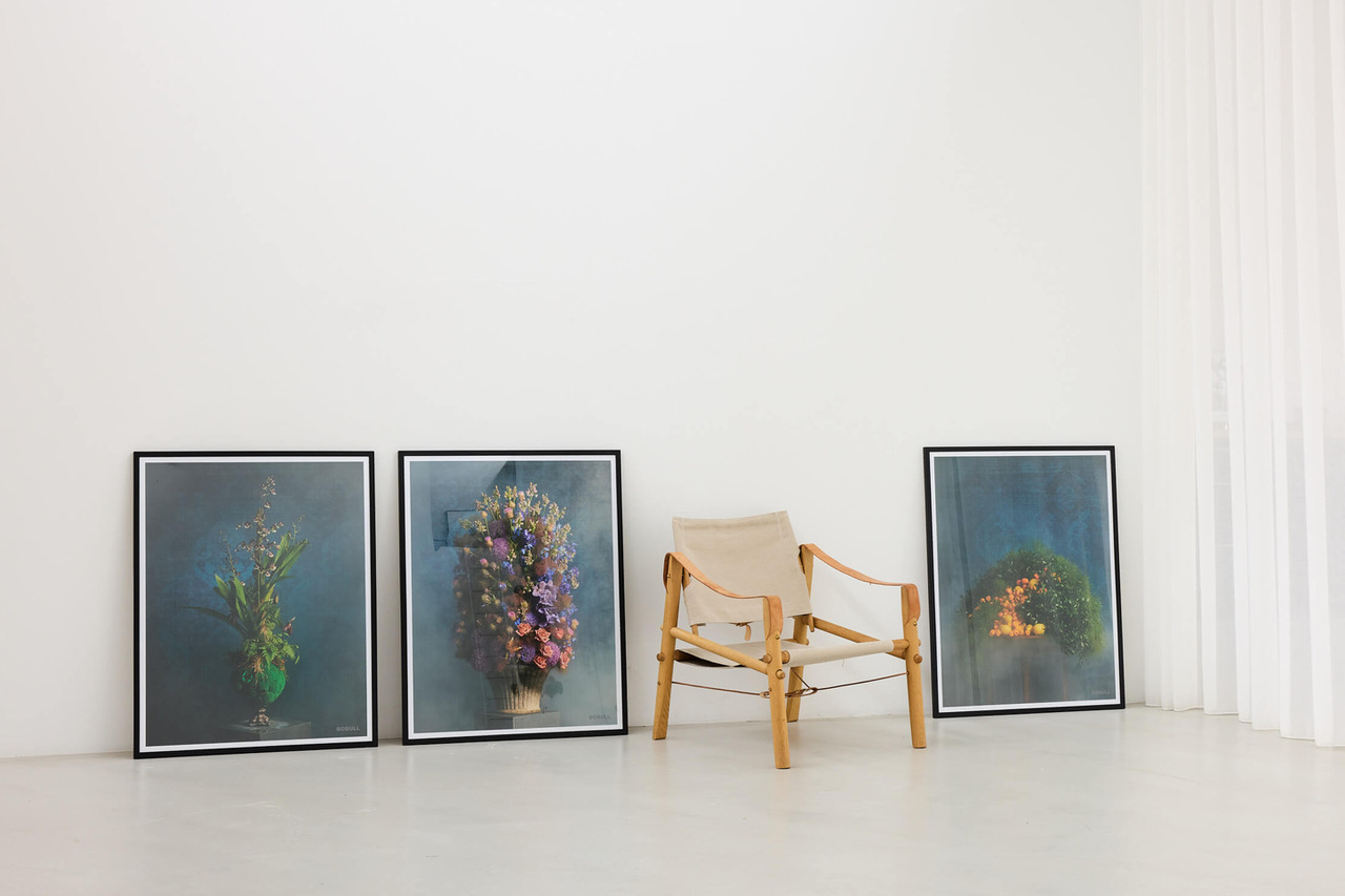 Bo Bülls blomsterkunst kan nu også nydes i form af plakater og kort – trykt i høj kvalitet med motiver fra hans farvestrålende kreationer: