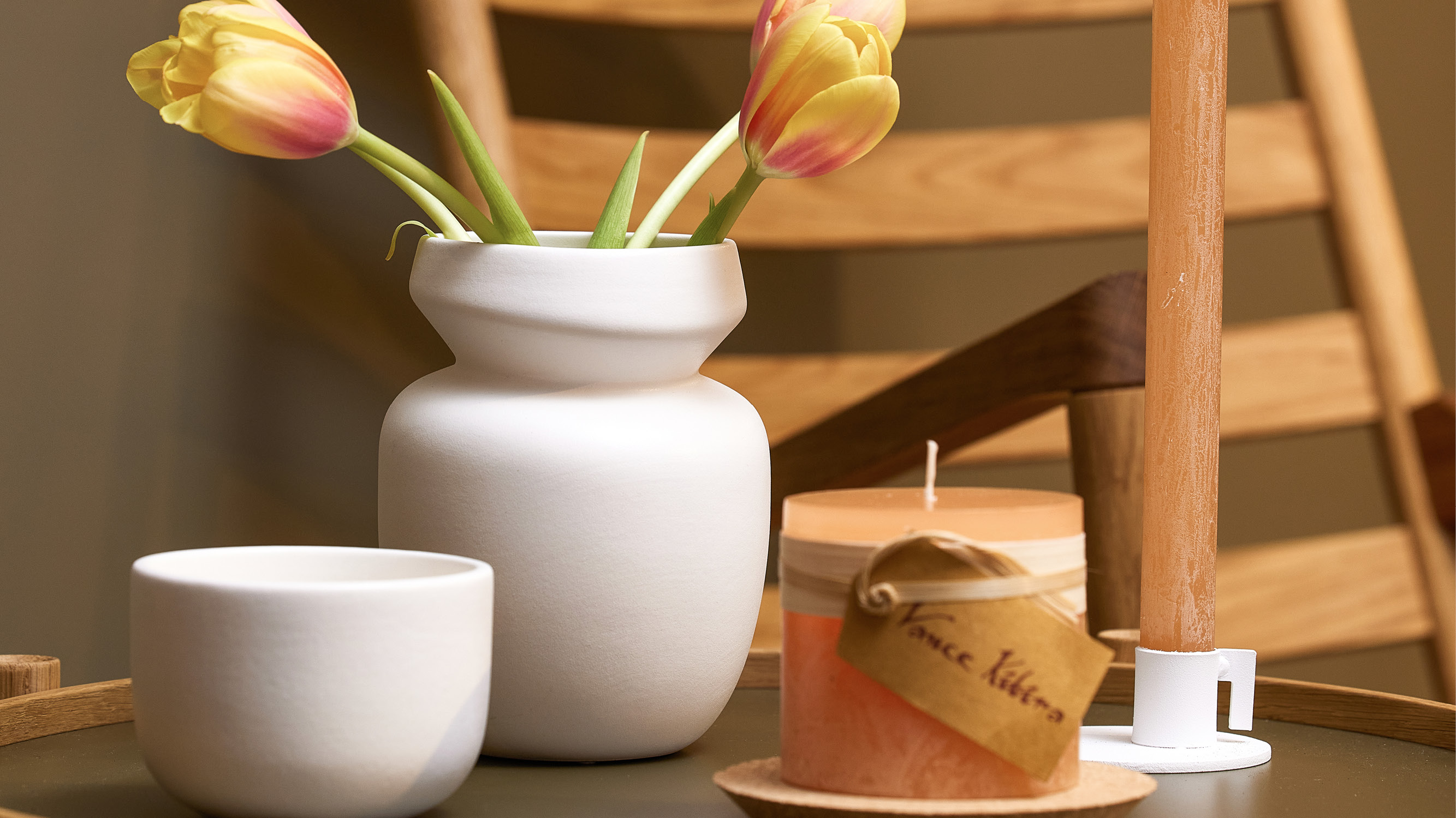 Placer den på et sidebord, en hylde eller en kommode, og lad den tiltrække opmærksomhed med sit enkle, men alligevel enestående design. Vasens størrelse gør den også ideel til at bruge på et mindre bord i et køkken eller fx en restaurant.