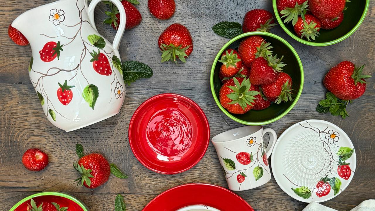 Jordbærserien er et dansk design i hjertet, produceret med kærlighed i Spanien, og den bringer både hygge, nostalgi og farver til bordet.
