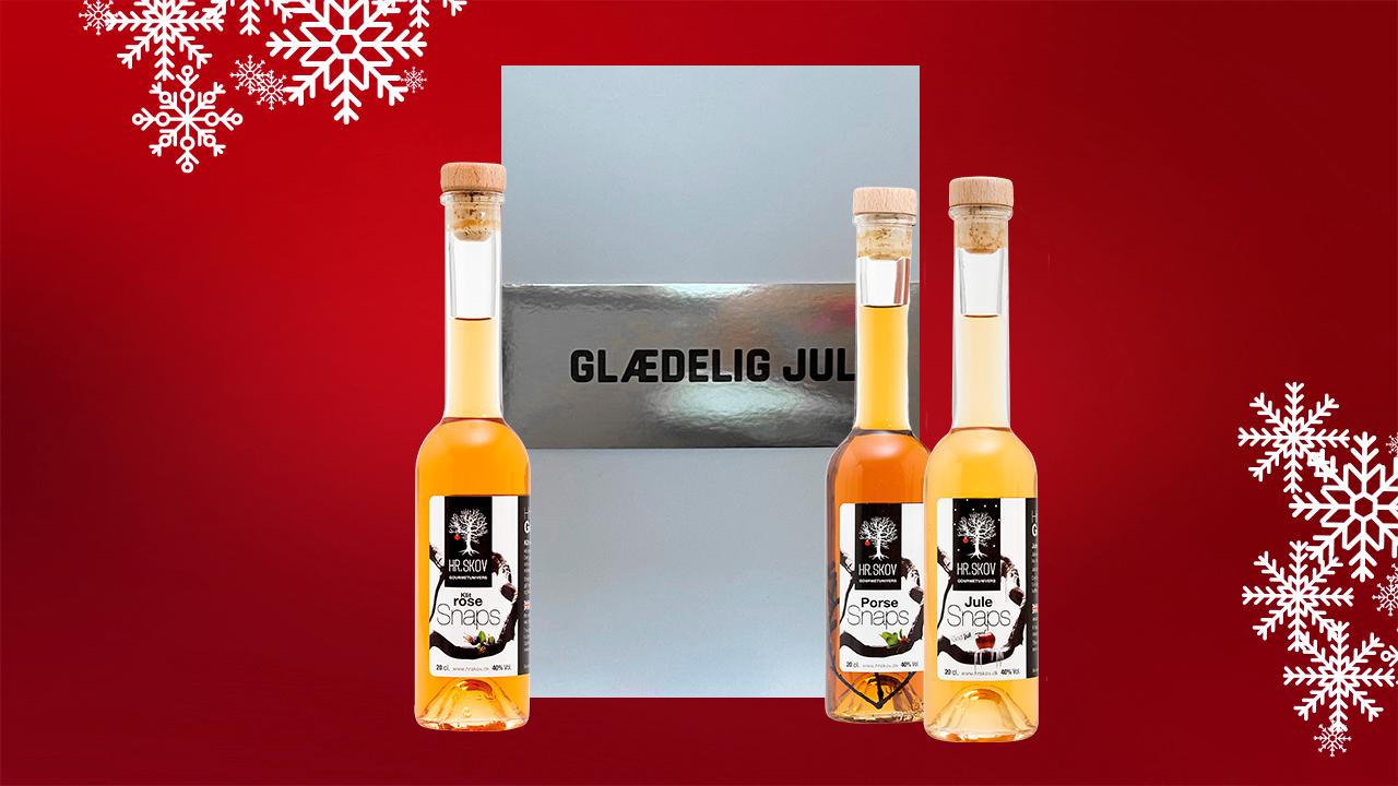 En af vores jule nyheder i år, er denne 'Smagekasse' som består af 3 små snapse, der giver dig mulighed for smage på vores snapse: om du er til du er til mild og sød (jule snaps), krydret og rund (klitrose snaps) eller fyldig og kraftfuld (porse snaps).