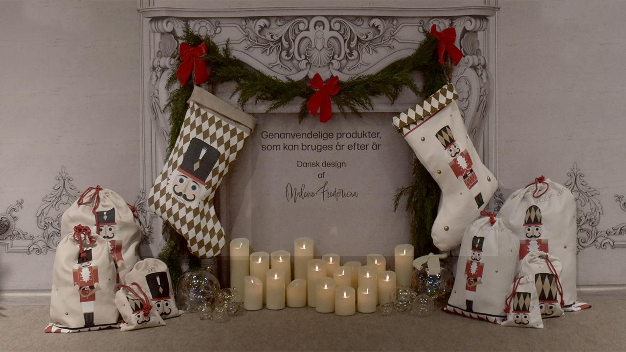 Eksklusive, håndlavede julekalendere i hatteæsker udført af genbrugspapir. Julesokker og jule-gaveposer i stof, vævet, trykt og syet i Danmark og skabt til at bringe traditioner og bæredygtighed sammen.