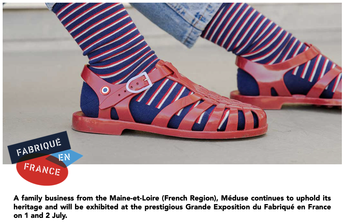 The authentic Méduse sandal has embodied French innovation and expertise since 1946 at the Humeau-Beaupréau Group. The shoes have become fashion icons, copied, reworked but never matched; the Sun model continues to transcend generations while looking as young as ever. This year, the Sunmif model will be exhibited among the 125 Objects Made in France, representing all the departments in Mainland France and its Overseas Territories. The event, organised under the aegis of the French Presidency, will showcase the emblematic French products that embody the country’s excellence and expertise.