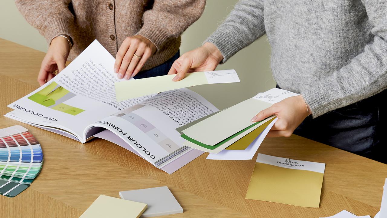 Vores farvepalette bruges som referencepunkt og baggrund på forskellige måder gennem hele kollektionen; fra vores messestande til kataloger og lookbook, showrooms og fotostudie.