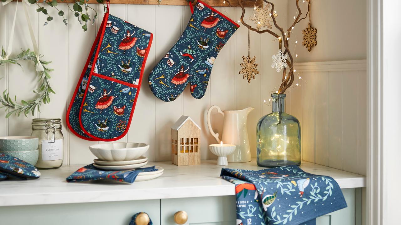 Designet "12 Days of Christmas" genskaber den klassiske julesang, inspireret af illustrationer fra elskede julebøger. Denne fortryllende kollektion har fyldige julefarver, herunder bærrød, marineblå og gyldengul, der fremkalder en følelse af nostalgi og varme. Designet indfanger smukt magien ved sæsonen, hvilket gør den til en perfekt tilføjelse til festlige fester.
