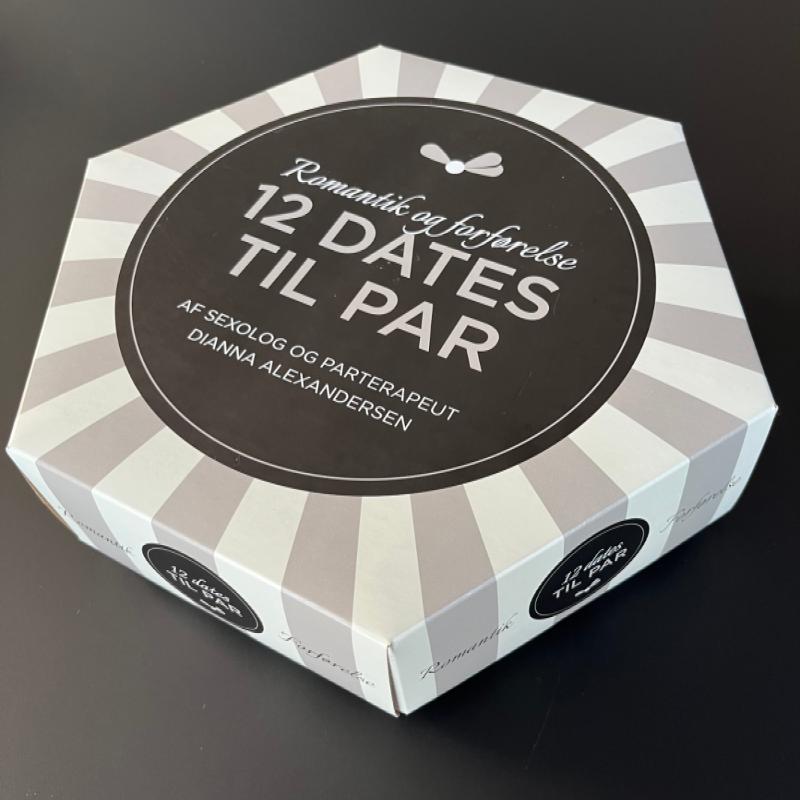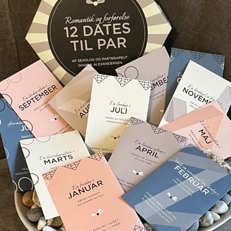 Æsken indeholder 12 dates - en til hver måned – som gemmer på søde, varme og kærlige dates, parret enten skal gøre sammen eller for hinanden henover året.