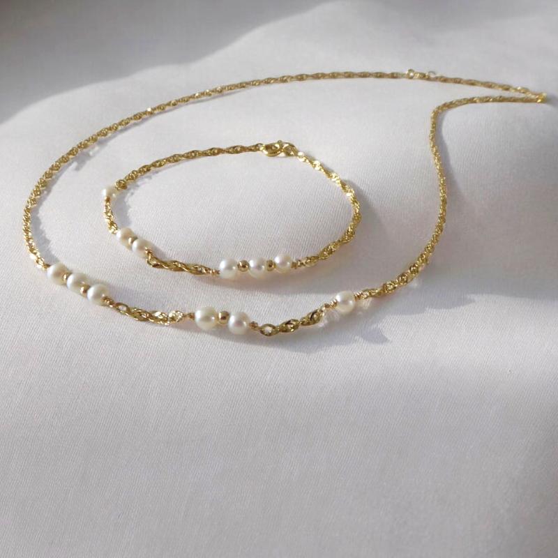 arrow_backTil oversigten14 karat armbånd og halskæde med Ferskvandsperler
