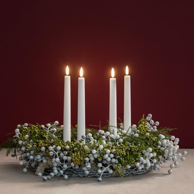 arrow_backTil oversigtenBring warmth to your holiday season with our Christmas Giftboxes, each containing four candles—one for every week of Advent—along with four elegant Spike Candleholders to showcase them beautifully. A handy Remote Control is included, allowing you to manage all the candles at once. Share the gift of Christmas ambience with someone special or get inspired to create your own festive centrepiece. Show off the Uyuni Taper Candles with these handy metal spikes. Now available in Nordic White.
