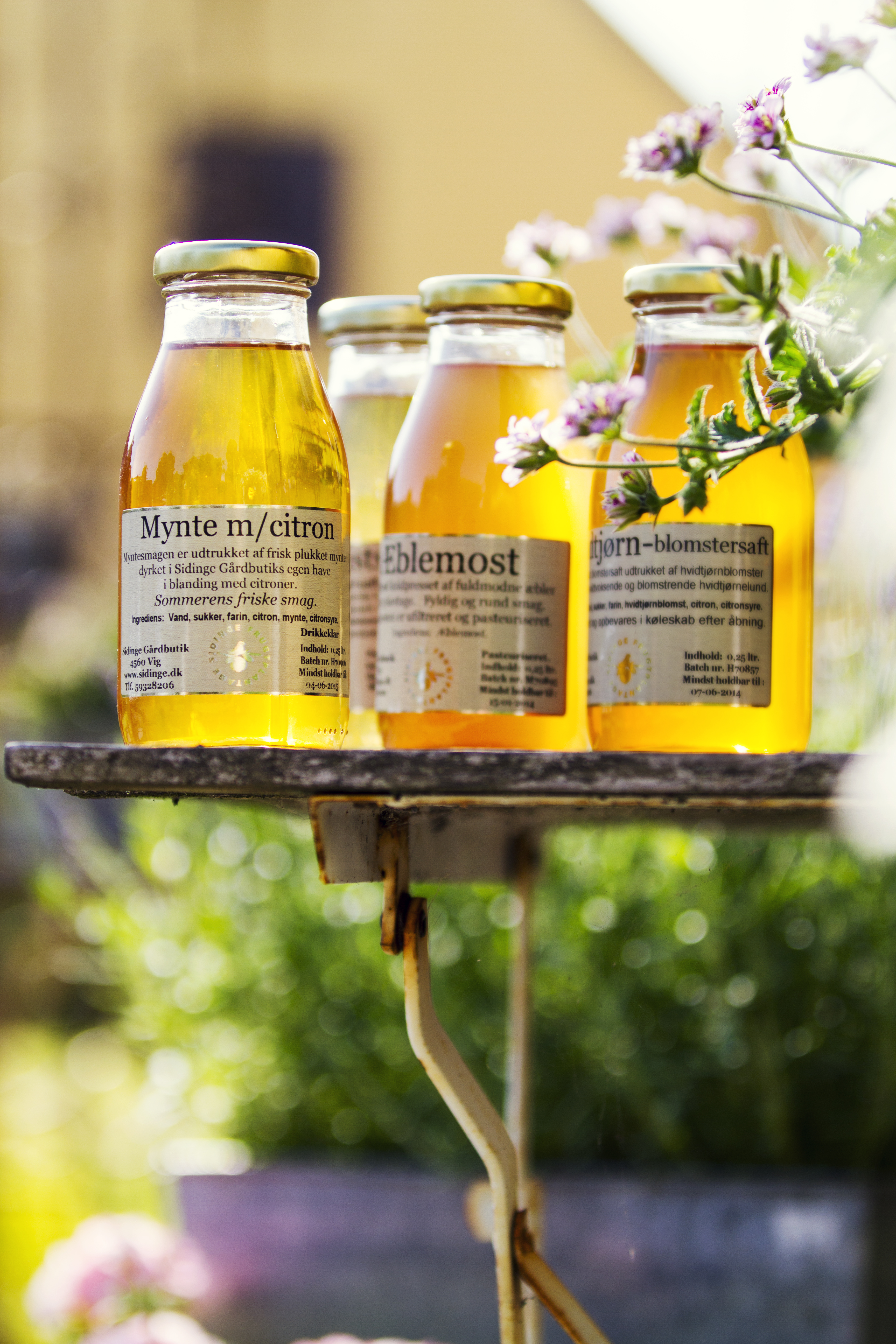 arrow_backTil oversigtenHyldeblomst, Hvidtjørn og Mynte produceret som udtræk af blomster og friske skud til nogle lækre friske og klare safter.