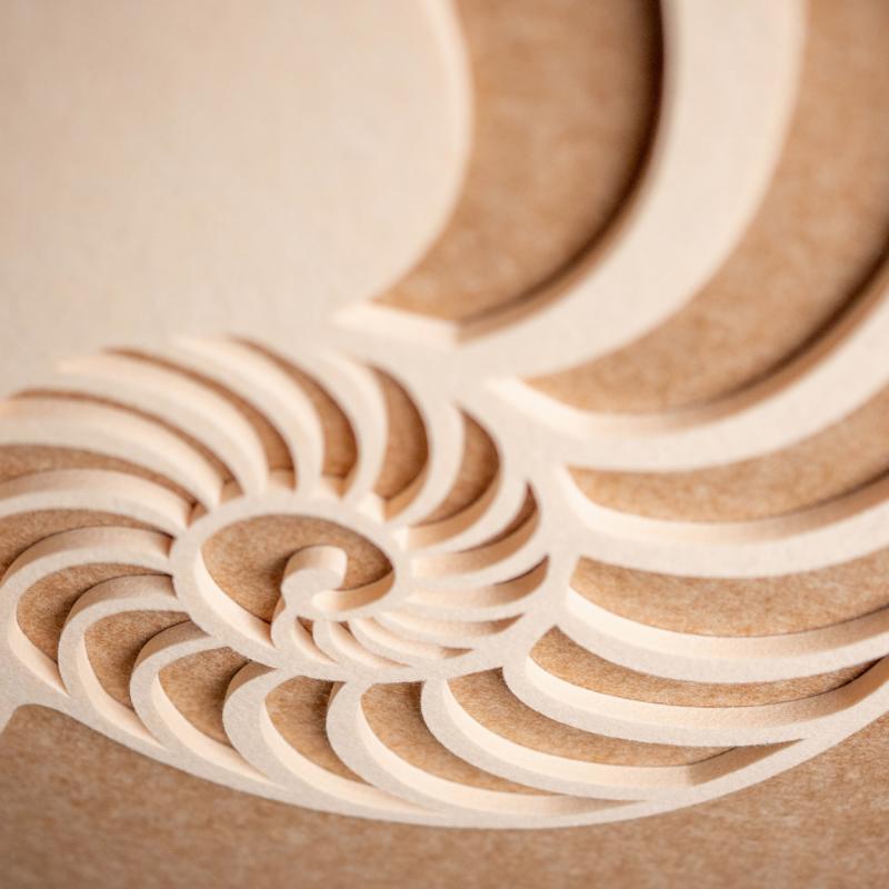 arrow_backTil oversigtenKvadratisk akustikpanel med råhvidt fossilmotiv som er monteret på en beige baggrund. Panelet er designet i to lag 9 mm akustisk dæmpende filt som er fremstillet af 75 % genanvendt plast. Det er nemt at sætte op med det medfølgende ophæng.