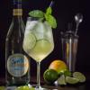 Den serveres over is i et stort vinglas og pyntes med friske mynteblade og en skive lime eller citron for at fremhæve de friske og blomsteragtige noter.