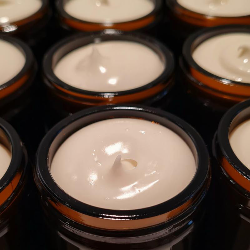 Rose Hydrolat (Økologisk), Hibiskusudtræk (Økologisk), Tidselolie (Økologisk), Kokosolie (Økologisk), Vegetal - (Cosmo Certificeret - emulgerende og blødgørende), Glycerin (Økologisk), Hyaluronsyre gel - lavmolekylær – genopretter hudens fugtbalance, Tigernød olie (Økologisk), Cetearyl Alcohol (emulgerende og blødgørende), Evening Primerose olie (Økologisk), Macadamia Nøddeolie (Økologisk), Squalane (fra oliven), Allantoin (kulsukkerrod), E-Vitamin (Cosmos Certificeret), Natrium Benzoat og Kaliumsorbat (konservering), Citronellol, Geranoil.
