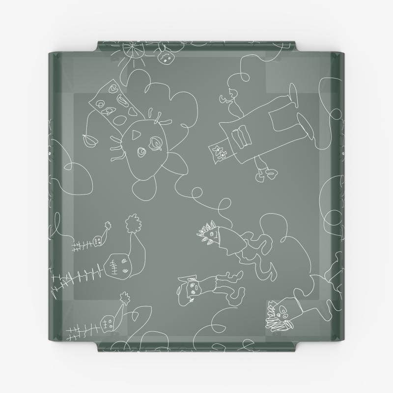 Taburetten er dekoreret med små børnetegninger, hvilket gør ART helt unik og nærmest til et helt børnekunstværk.