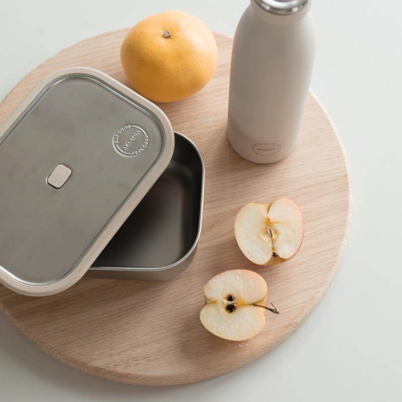 arrow_backTil oversigtenLunch Box er ideel til arbejde, skole og studie. Pak madpakken i AYA&IDA Lunch Box rustfrit beholder, læg låget på, luk luftventilen og sæt remmen omkring. Derved holder Lunch Box sig 100% tæt og holder din mad frisk, længere. Beholder og låg er produceret i 100% 1-klasses rustfrit stål, mens luftventil, tætning og rem er lavet i platinium silikone. Laboratoriecertificeret til at opfylde eller overgå LFGB (food contact grade testing). Madkasse kan. Indeholder 1000 ml og fås i flere farver.