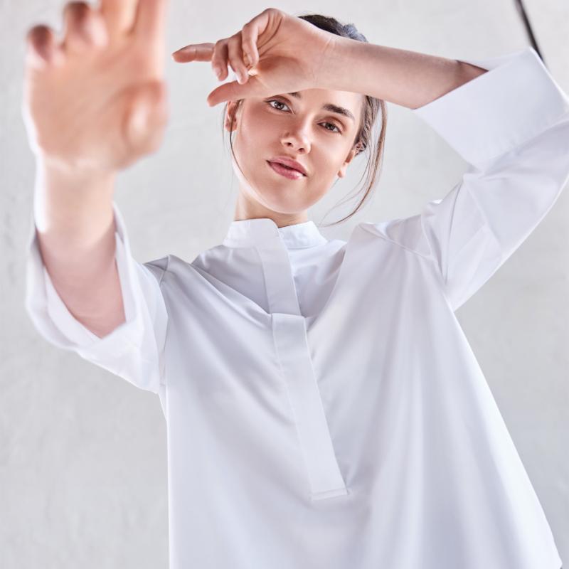 arrow_backTil oversigtenModerne skjorter i en eksklusiv blanding af bambus, mikrofiber og spandex, med en blød, åndbar kvalitet og et krølfrit udtryk. Designet er inkluderende med fokus på forskellige pasformer, så der er noget til enhver krop og anledning, altid med et feminint udtryk.