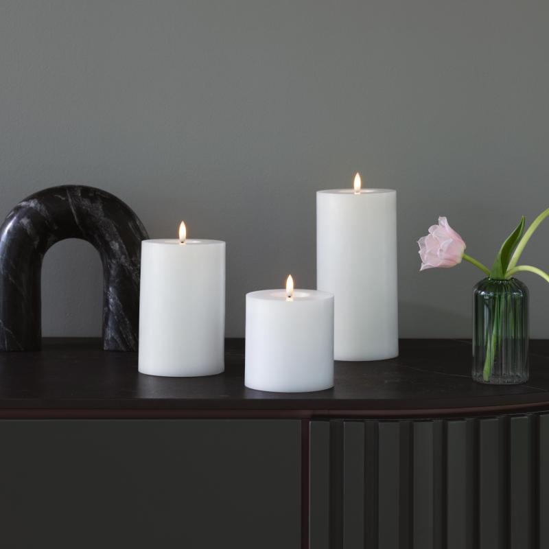 arrow_backTil oversigtenAdd a cozy feel with our LED Basic Colours Melted Pillar Candles, available in a silk texture. The realistic melted pool adds extra light reflection, bringing extra warmth to any space.
