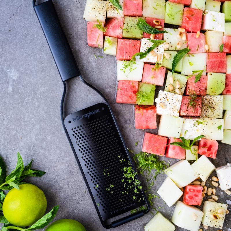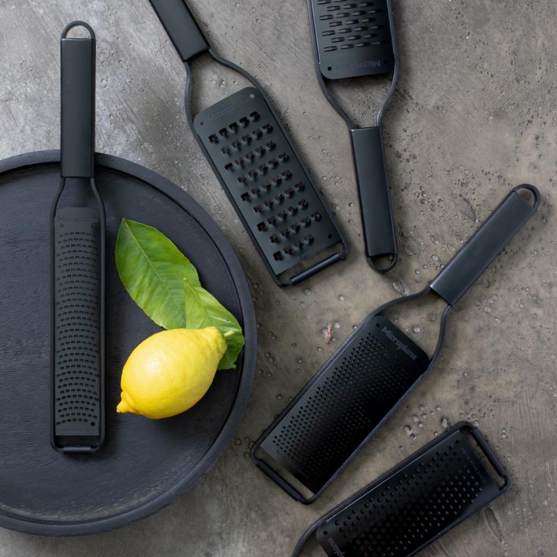 The series offers seven blade options: Zester, Fine, Coarse, Ribbon, Extra Coarse. Large Shaver and Truffle Tool.