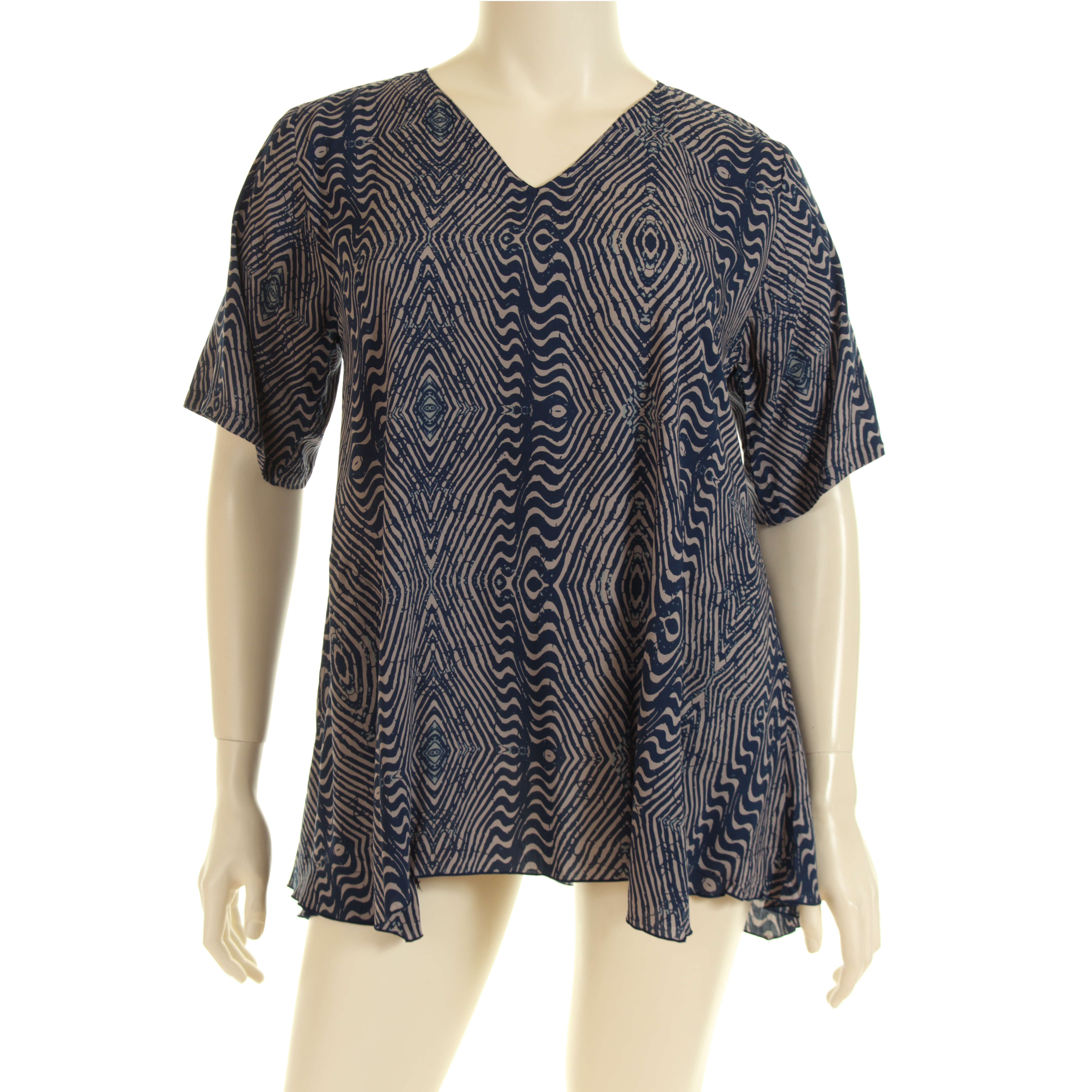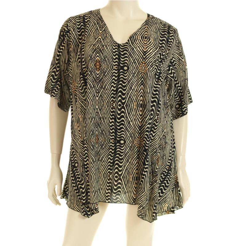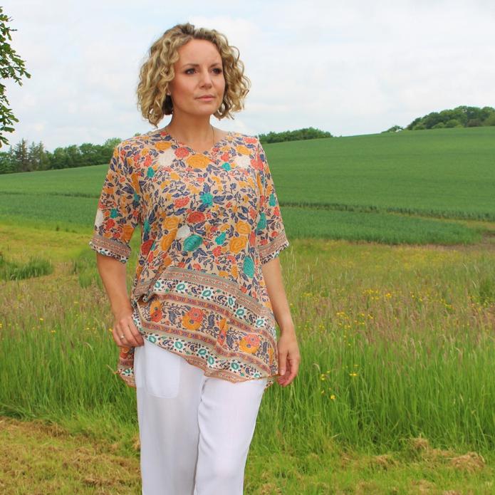 arrow_backTil oversigtenAsymmetrisk bluse i voile viskosetryk med lommer. Dette print kommer i fire farver/prints