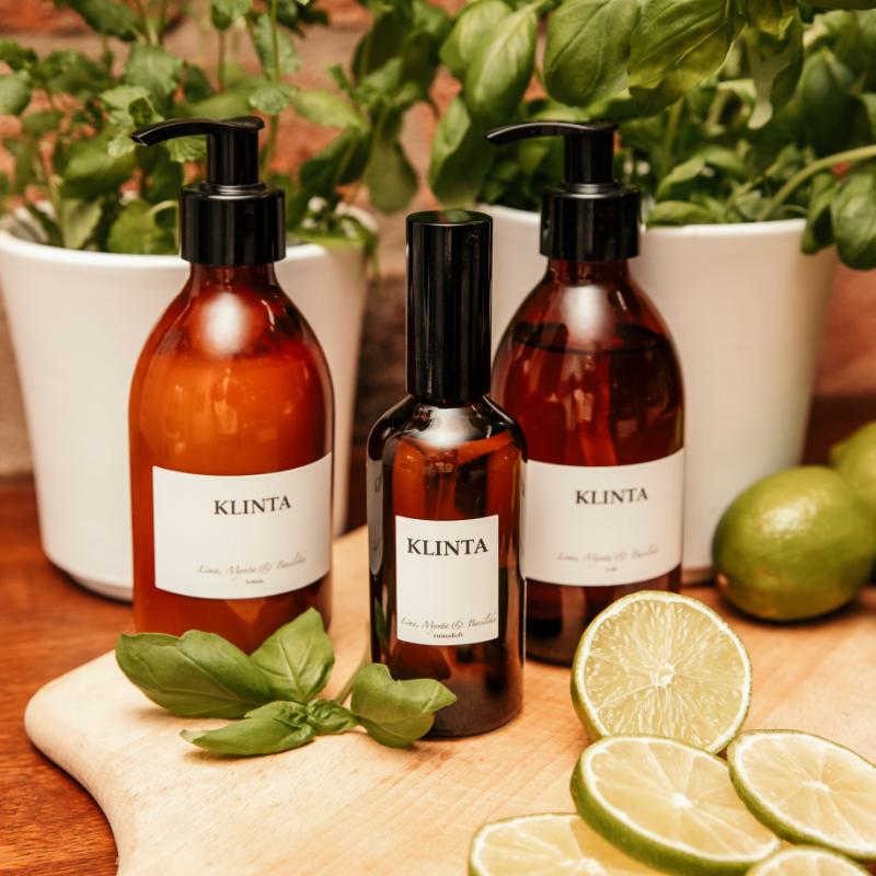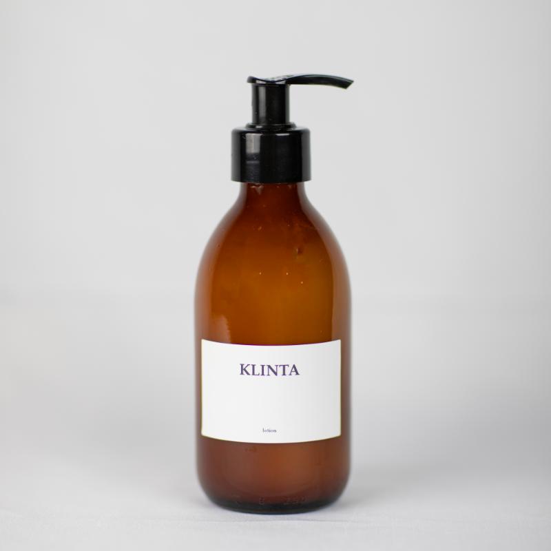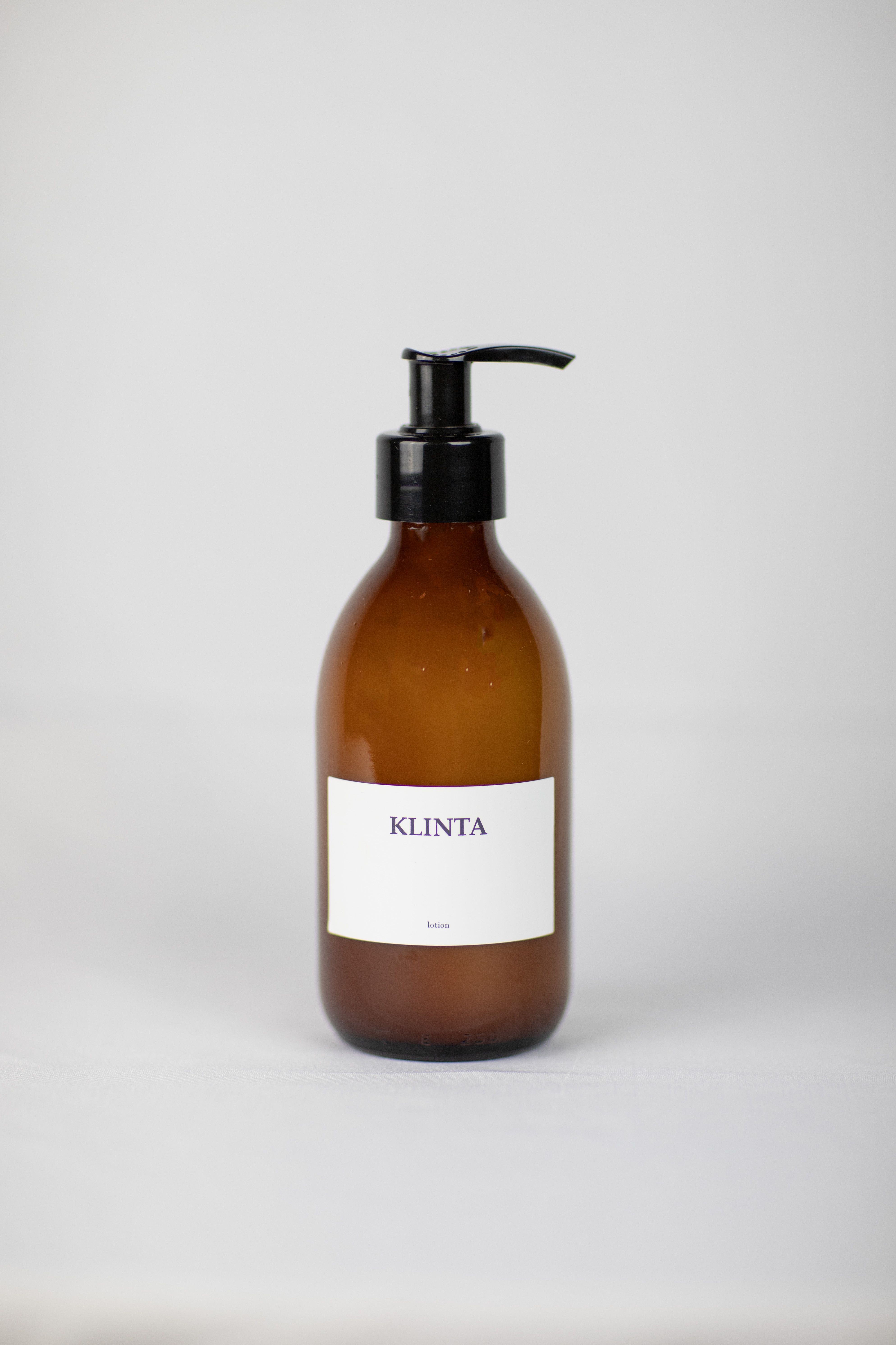 Klinta lotion på flaske har samme milde og rene duftegenskaber samt naturlige og miljøvenlige som som Klintas øvrige produkter. Klintas Lotion virker både til ansigt, hænder og krop, er rig og luksuriøs. Den absorberes let og velegnet til følsom hud. Klintas lotion Klinta Body Butter inderholder ingen: parabener eller kunstige konserveringsmidler, farvestoffer, animalske ingredienser, mineralske olier, unødvendige tilsætningsstoffer. Der er ikke foretaget dyreforsøg. Vælg mellem 4 forskellige dufte.
