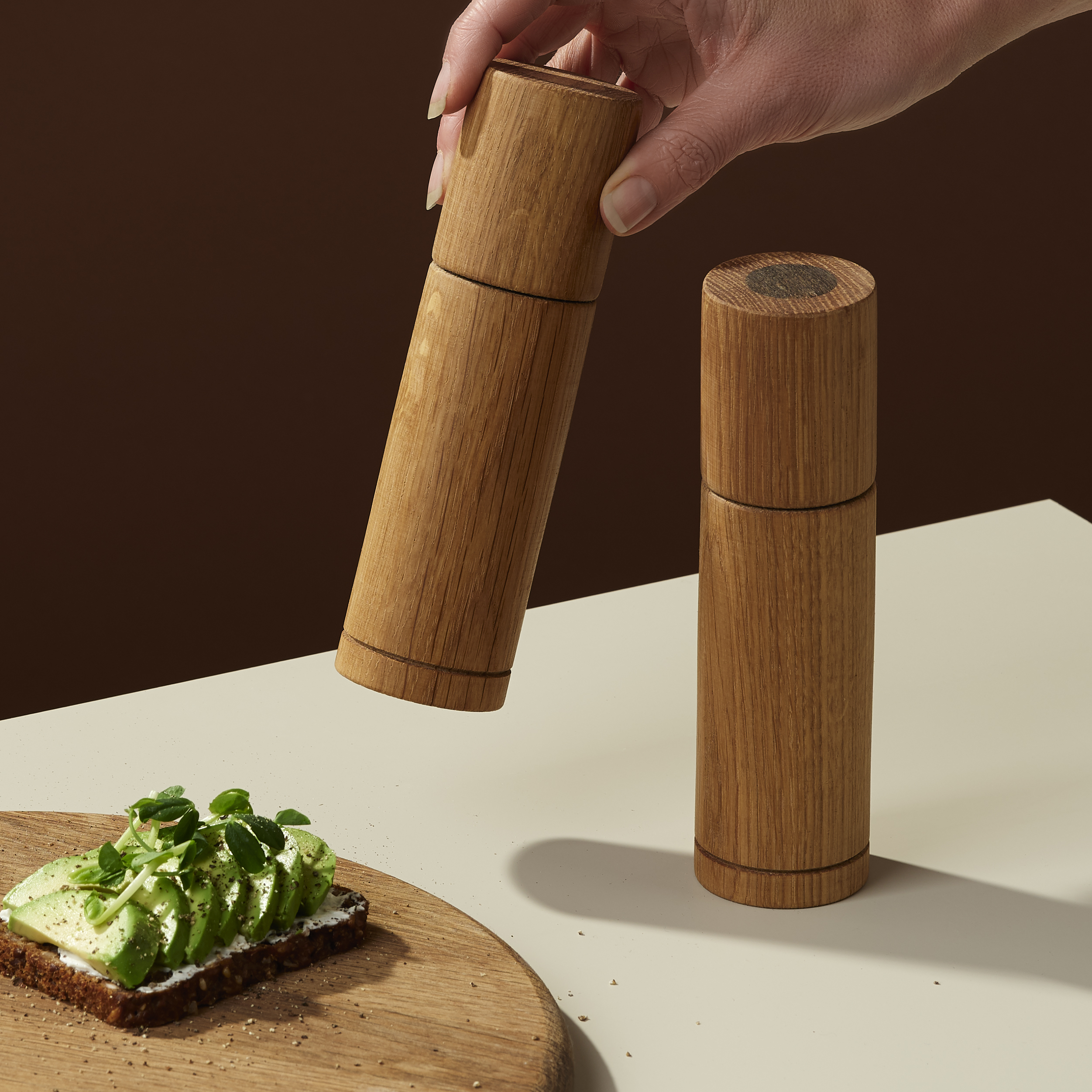 arrow_backTil oversigtenDanskproducerede salt- & peberkværne med træbakke i olieret eg.