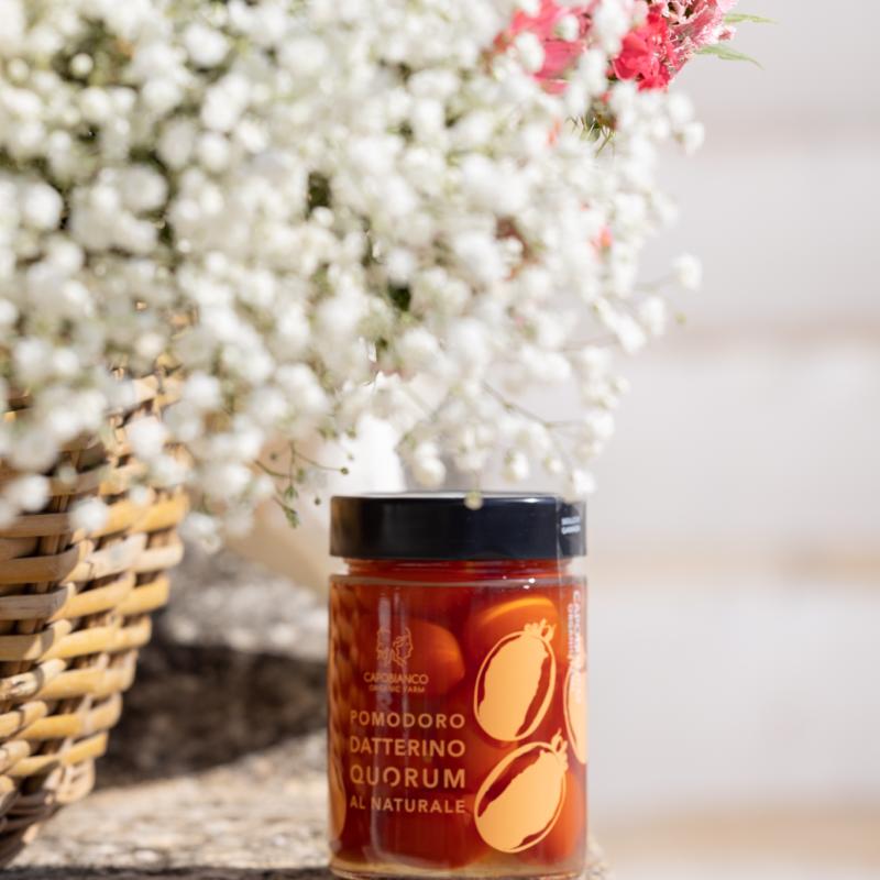 Tomaterne er Capobiancos kerneprodukt, hvor hver eneste San Marzano- og Piennolo-tomat bliver dyrket med omhu på familiens gård. Disse tomater dyrkes økologisk og skånsomt forarbejdes for at bevare deres naturlige friskhed og intense smag. Gennem innovation og bæredygtighed formår Capobianco at hædre fortidens traditioner, samtidig med at de skaber fremtidens fødevarer.