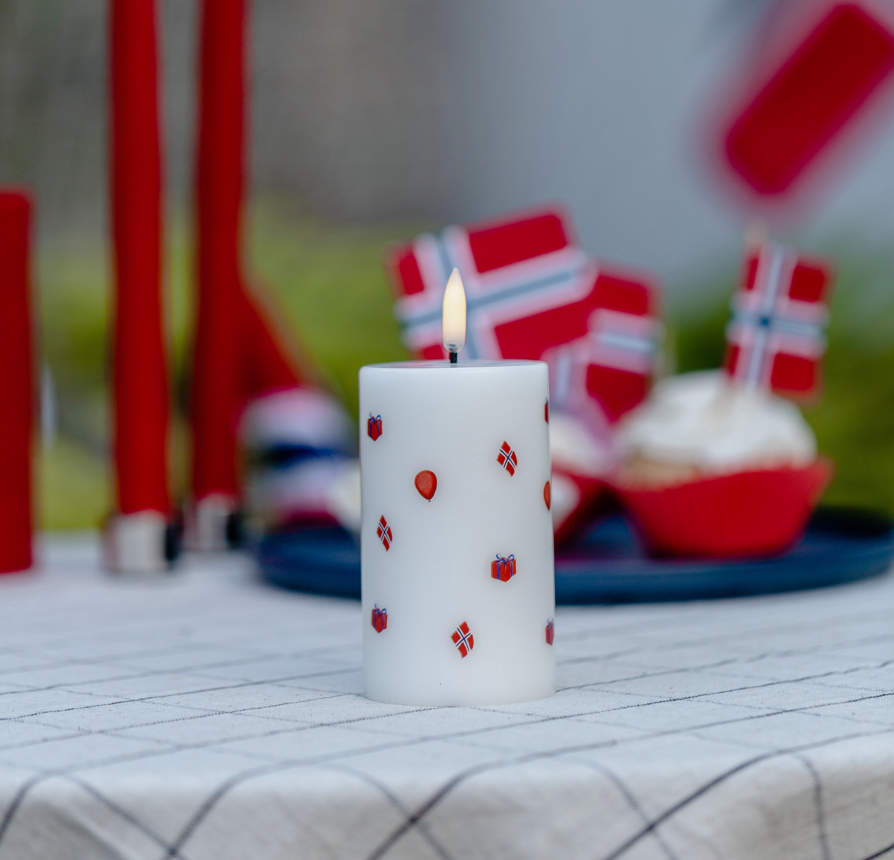Crafted from real wax and featuring Uyuni’s signature LED flame, these candles retain their shape and charm time after time—no melting, no mess, just lasting beauty. The Danish Celebration Candle brings cosy, flickering light to classic red-and-white flag traditions, while the Norwegian Celebration Candle offers a playful nod to Norway’s iconic colours and festivities.