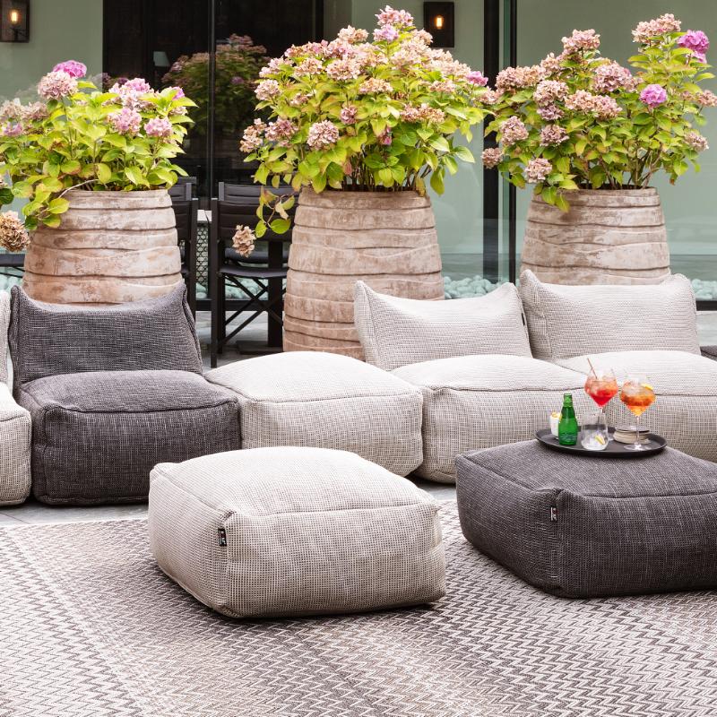 arrow_backTil oversigtenDe prestigefyldte Dotty puf sælges over hele verden og findes allerede i mange forskellige haver og på mange verandaer & terrasser . Det stærke 100% tyndt spundne UV-stabiliserede polypropylenmateriale sikrer, at stoffet kan modstå både sol og regn. Tekstilets struktur er kraftigt og stærk. Den tilpasser sig kroppens bevægelser, og en fremragende EPS-fyldning af høj kvalitet sikrer en ergonomisk og komfortable siddeplads.