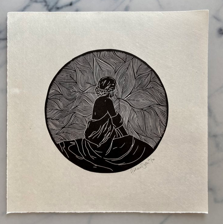Drømme er et originalt linoleumstryk, som kan trykkes i et oplag særligt til jer.