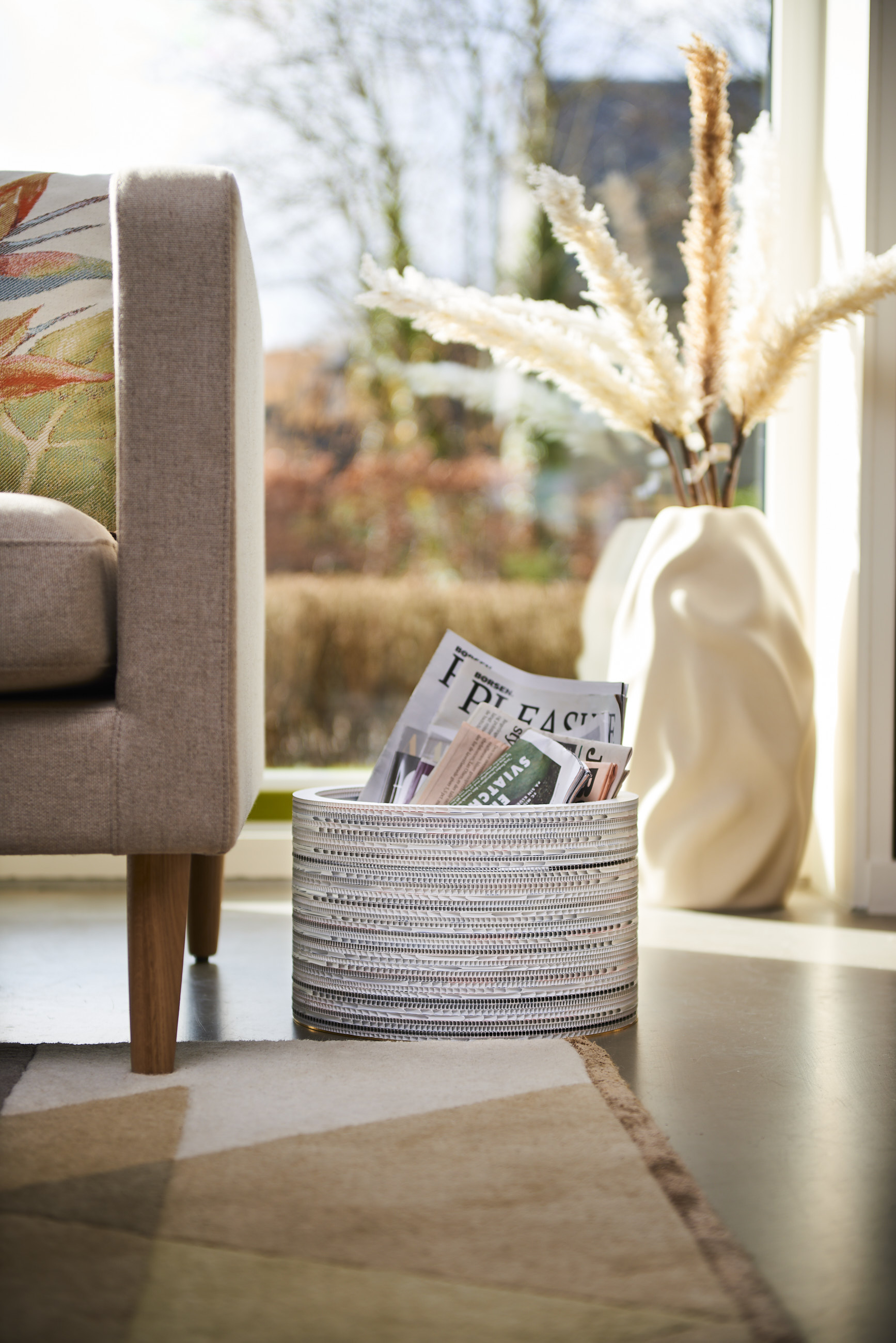 Vores to fokus materialer er bølgepap og kanalplast. Grunden hertil er at pap i forvejen er et genbrugsmateriale og kanalplast indeholder genanvendt plast. Samtidig er det to meget anvendte materialer, hvorfor det også sikre os en kontinuerlig tilgang af råmateriale.