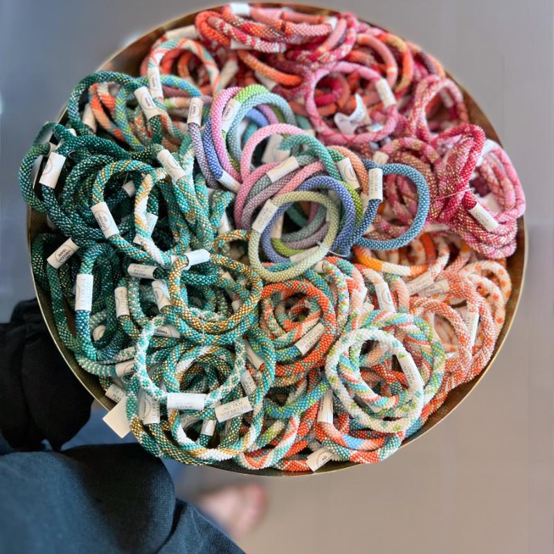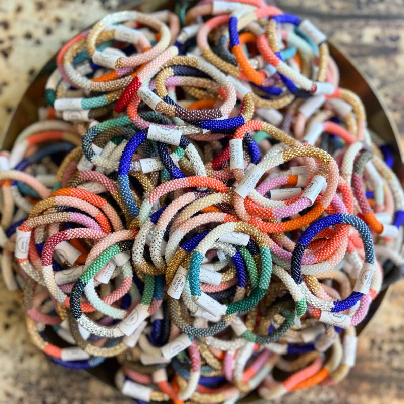 arrow_backTil oversigtenSmukke, farverige roll-on armbånd håndlavet af kvinder i Nepal under fairtrade-vilkår.