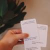 Sådan spiller du: På hvert kort er der to spørgsmål. Den som trækker et kort, vælger selv ét spørgsmål og stiller til en anden. Kan både spilles af børn, søskende og forældre imellem. Spillet kan også bruges på tværs af andre relationer med familie som tema.