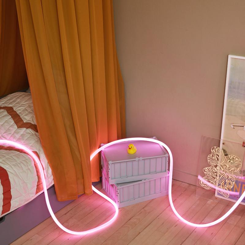 Den røde neonfarve skaber et fængslende blikfang og giver en flot og farvet glød, der skaber varme og intimitet i rummet. Det er en unik måde at få farve ind i hjemmet og er et frisk alternativ til det traditionelle hvide lys.
