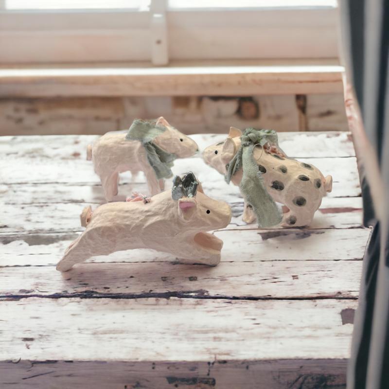 arrow_backTil oversigtenEt charmerende sæt bestående af to lyserøde grise – én med vinger og én med prikker og blødt tørklæde. Begge figurer er håndlavet og fulde af personlighed, klar til at bringe et legende og poetisk udtryk ind i dit hjem.