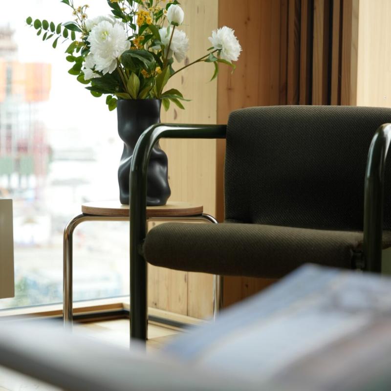 Det industrielle stel i genbrugsstål kombineret med det bløde polster i upcyclet uld og tekstiler giver FM 623 et moderne og bæredygtigt præg. Designet er produceret i Danmark og fås i fem farver, der kan kombineres på tværs af stel og polstring, så stolen nemt tilpasses individuelle præferencer – både som konferencestol og loungestol.