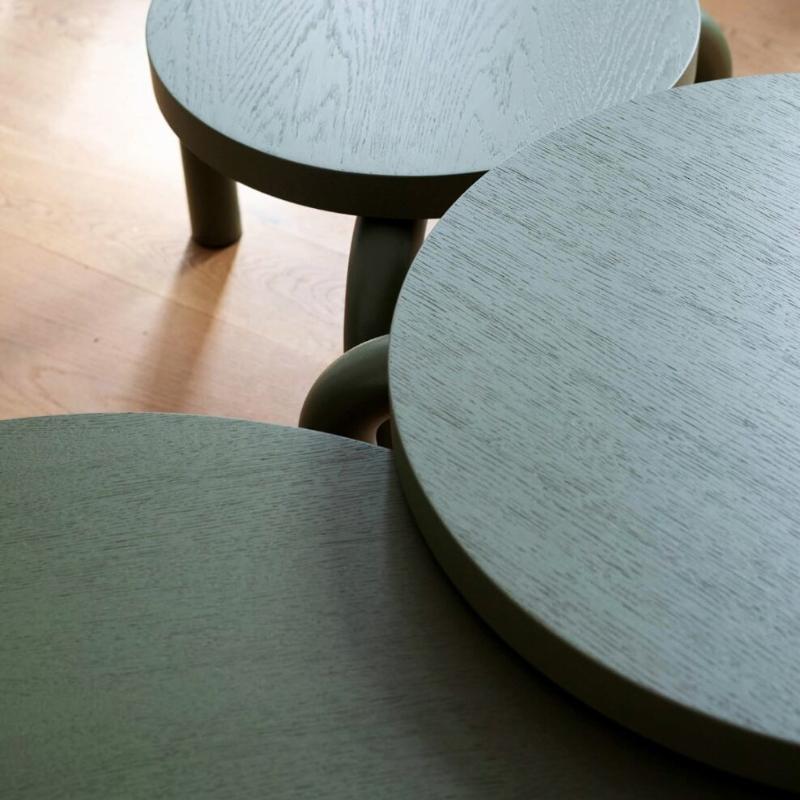Det vil være muligt at bestille stel såvel som bordplade i fem forskellige farver, der kan sammensættes efter ønske, og udtrykket kan ændres fra et farverigt element i indretningen til et mere neutralt møbel. Fat Table fås i fire forskellge højder med tre forskellige bordplade størrelser