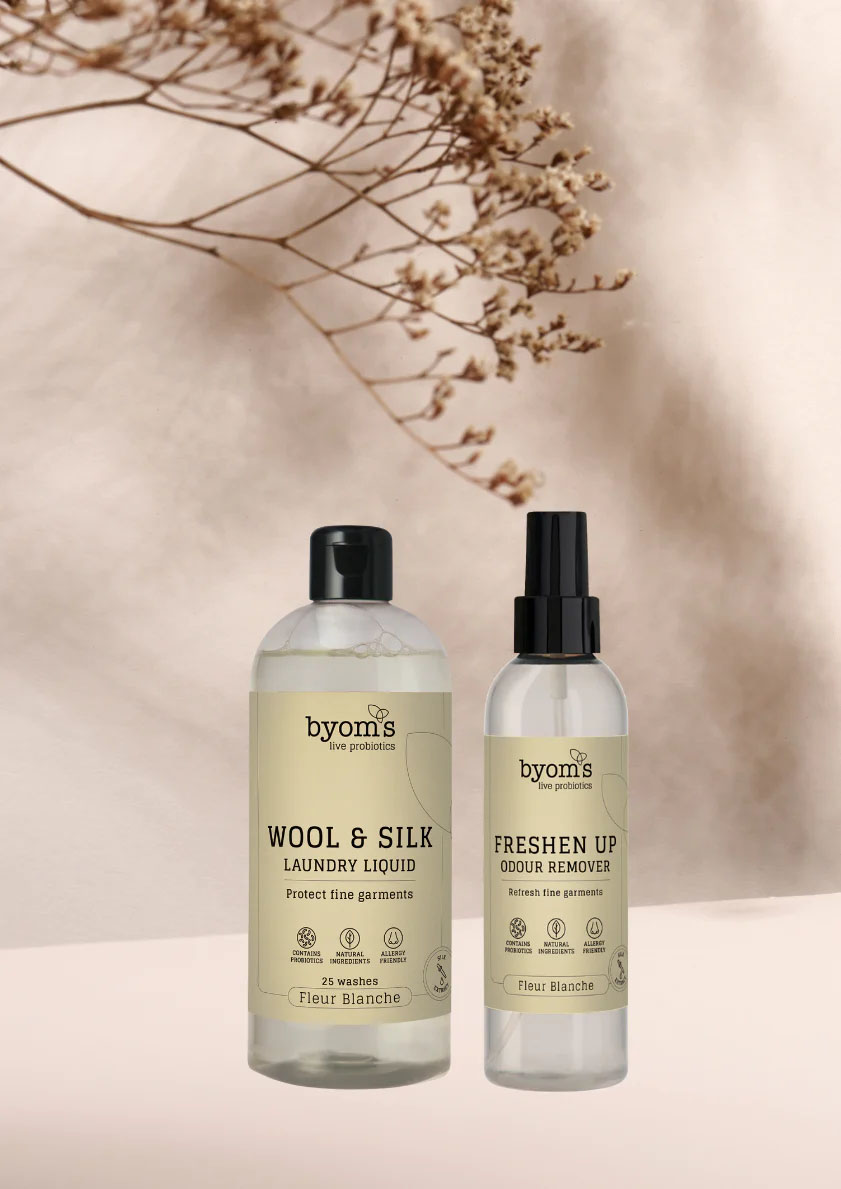 Med Freshen Up beriget med silkeekstrakt, får du en unik mulighed for at springe en vask over. Det er bedre for både tøj og miljø, da du ofte kan nøjes med at genopfriske, pletfjerne eller hænge ud i frisk luft. Du kan endda bruge lugtfjerneren til seng, sofa, tæpper og meget, meget andet.