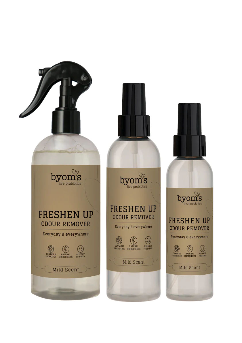 arrow_backTil oversigtenFreshen Up er en revolutionerende lugtfjerner med probiotika, der er udviklet til at reducere ubehagelig lugt i dit tøj, sko og andre artikler. Med den praktiske flaske har du mulighed for at give dit tøj et frisk pust, når du er på farten.