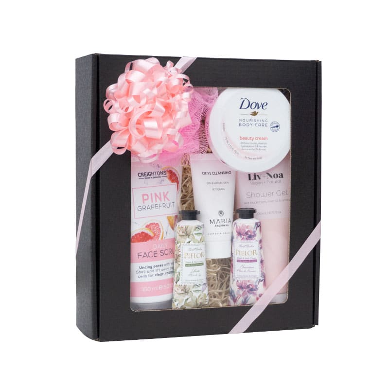 Gaveæske med rude i, flot visuel indpakning giver kunden og gavemodtageren et fint udsyn på varer.