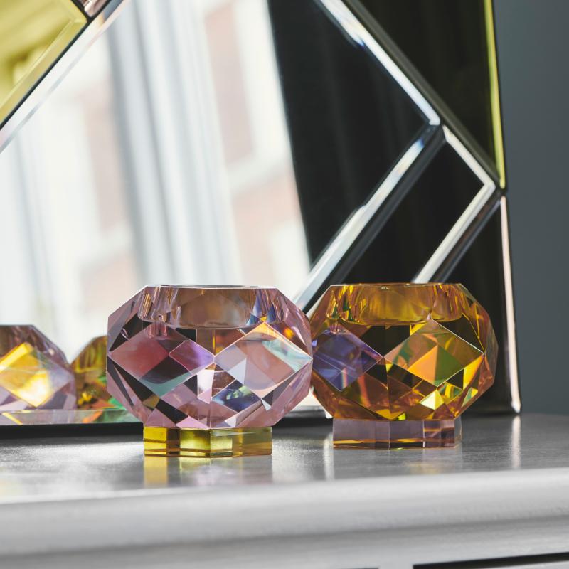 arrow_backTil oversigtenGlam fyrfadsstage er lavet i gennemfarvet K9 krystal. Vi bruger udelukkende gennemfarvet krystal der sikre en høj kvalitet i produktet. Alle lodrette sider er belagt med en iriserende effekt der forstærker krystallets naturlige evne til at reflektere lyse. Glam lysestagen fås i et væld af farver og vi lancerer nyheder hver sæson, som tilføjelse til de eksisterende farver. De smukkeste regnbuer opstår fordi krystallet ikke er bemalet. Der mød følger en flot gaveæske der gør lysestagen til den perfekte gave.