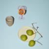 Vinglassene har ligeledes en glat overflade med en lang, slank stilk, som gør dem stilfulde og sofistikerede, og kommer i tre farver: rose, røgfarvet og grøn. Når solen rammer det farvede glas vil der kastes farverige skygger, hvilket skaber et varmt og lyst farvespil på bordet.