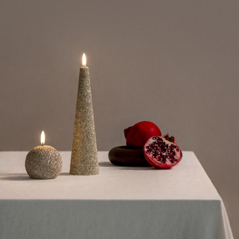 arrow_backTil oversigtenTransform your space into a winter wonderland with our Christmas edition Champagne Glitter Round Candle. Featuring a soft shimmer and glitter finish, this charming candle radiates elegance. Combine it with your Uyuni Round Candle collection for a magical display that perfectly captures the spirit of the season.