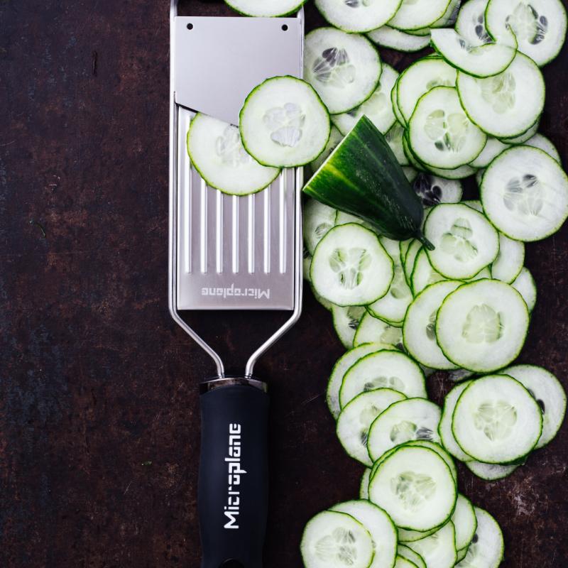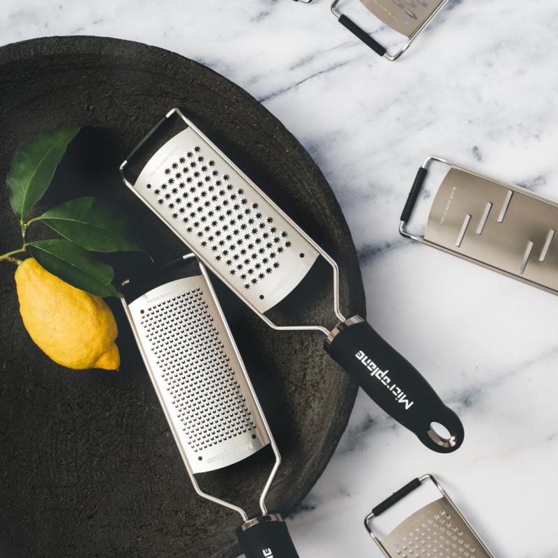 arrow_backTil oversigtenThe Gourmet Series stands for competence and variety. With a wider grating surface and ten different blades, it delivers various grating results – from fine to extra coarse- there is a blade style to suit all needs. A non-slip rubber food and soft touch handle completes each grater.