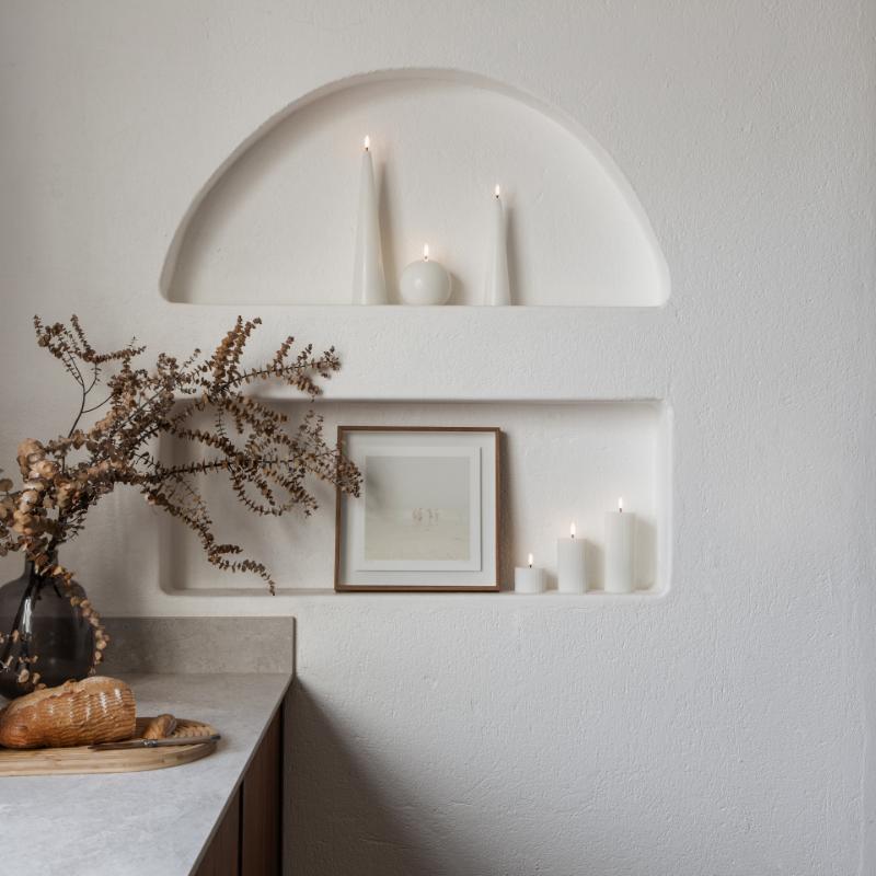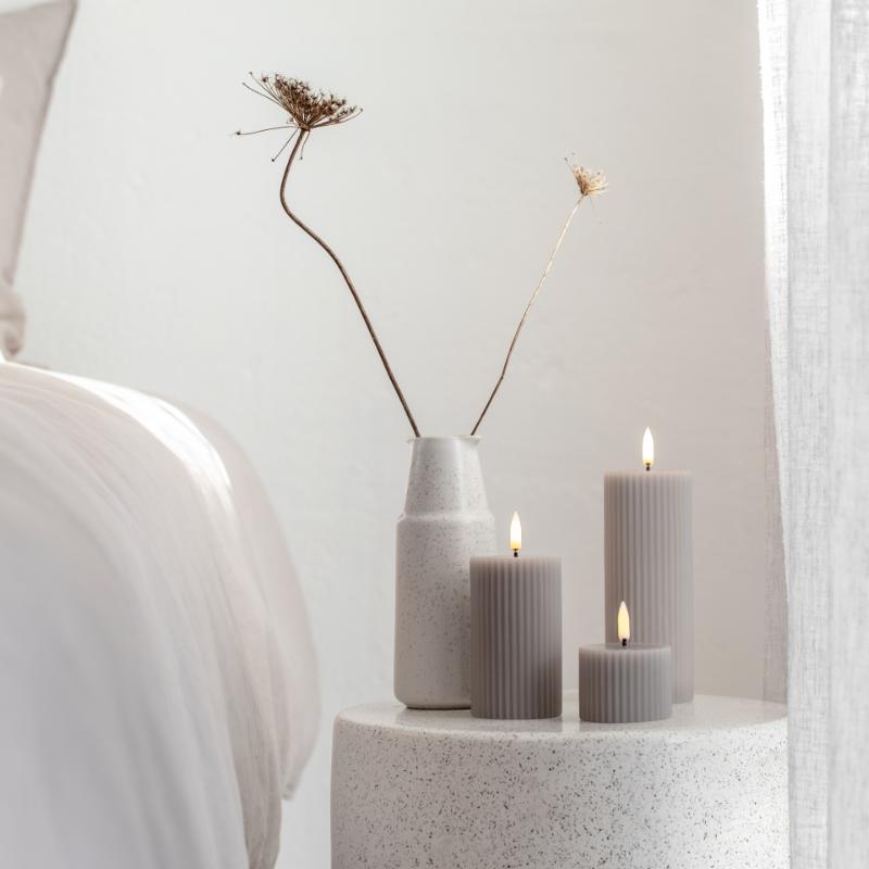 Grooved Candle kommer nemlig nu i den klasiiske farve Sandstone og Nordic White fås nu også i en lille 4,5 cm størrelse. Vores Grooved Candles er lavet af ægte voks for at give den luksuriøse følelse af et traditionelt stearinlys.