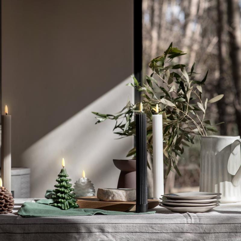 arrow_backTil oversigtenAdd a little extra charm and detail to your table with our Grooved Taper Candles. Each candle is meticulously hand-carved with stylish grooves, adding depth and texture to your space. Despite their thicker size, these candles fit seamlessly into the Uyuni Light Candleholders, offering versatility and style.