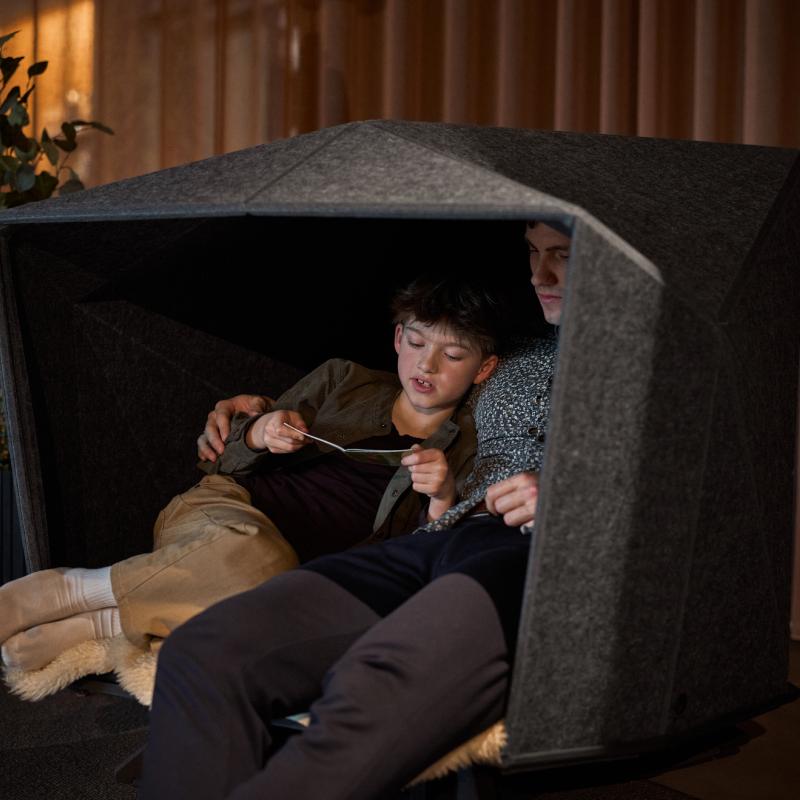 arrow_backTil oversigtenHabi®Cave er et bæredygtigt akustikmøbel, hvilket betyder, at lydniveauet inde i Habi®Cave er testet til at blive reduceret med en tredjedel i forhold til lydniveauet i det rum, hulen står i.