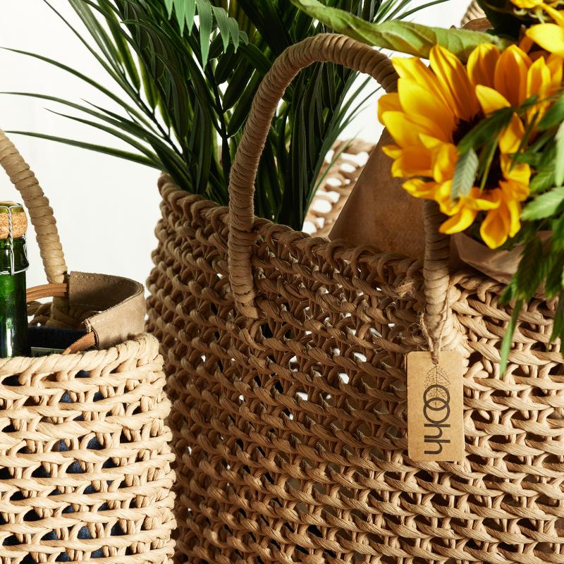 arrow_backTil oversigten- Håndvævet - Fremstillet i genbrugspapir Disse smukke håndflettet tasker fra OOhh Collection tilbyder dig så mange muligheder. Brug dem til opbevaring at garn, puder, tæpper m.m. eller brug dem til blomster. Eller hvad med at tage dem med til stranden, på picnic eller til lettere shopping. Tasker har et smukt design og med stor anvendelighed. Kombinationen af den håndvævet teknik og den stærke papir kvalitet garanterer dig et stærkt og stabilt produkt.