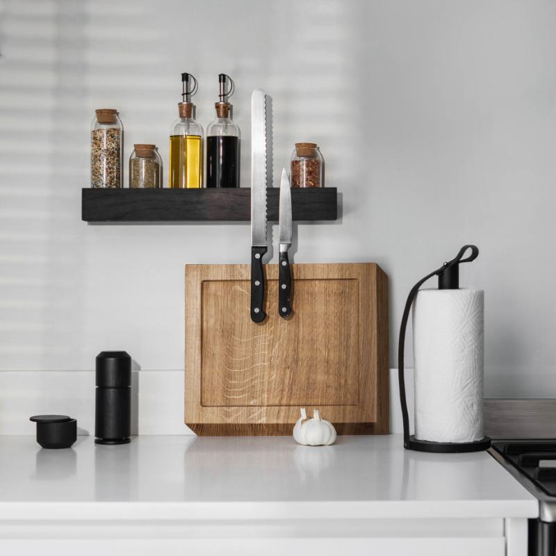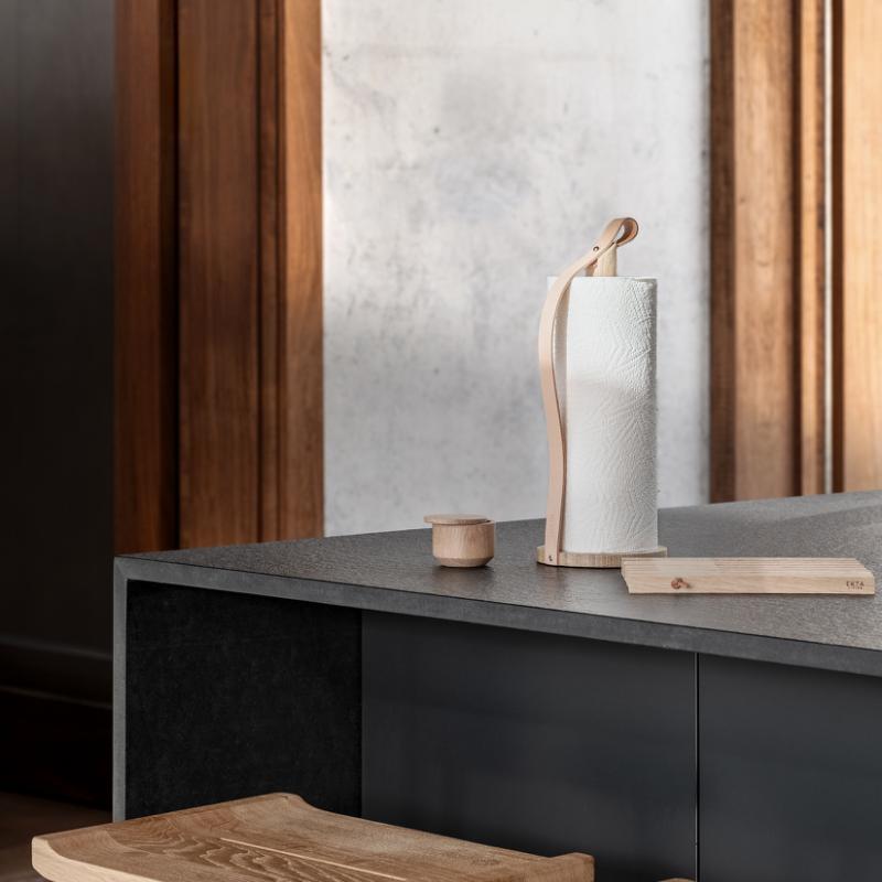 arrow_backTil oversigtenKøkkenrulleholderen Hands On er helt enkel og stilren i designet og er både funktionel og praktisk i brug. Hands On er udført i massivt europæisk bæredygtigt egetræ med smukke synlige årer. Den påsatte kernelæder-strop holder papiret på plads, og kan samtidig bruges til at bære køkkenrulleholderen. Hands On fås i Nature, Oiled, Smoked og Black.