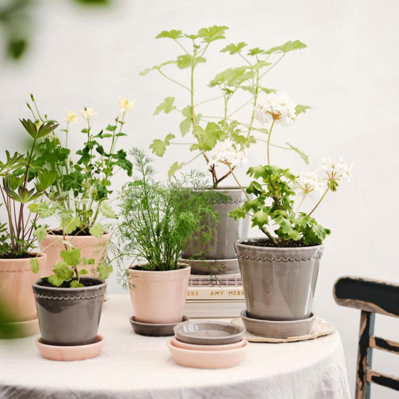 Helena fås i to varianter: en høj rosenkrukke og et lavt urtefad.