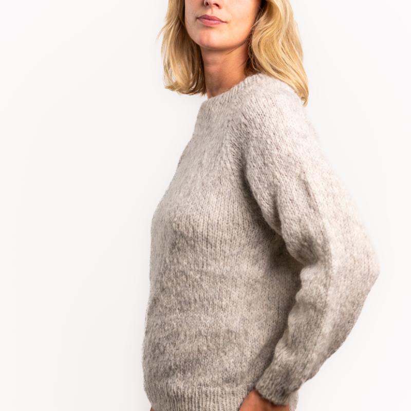arrow_backTil oversigtenHandstrikket sweater i blød og luftig alpaka-uldblanding fra Italien. Garnet er komponeret med en lille smule genanvendt polyamid for at sikre, at den kan holde til masser af brug. Lavet i Burundi.