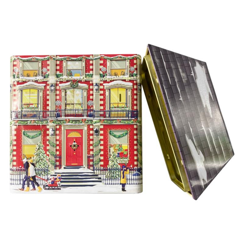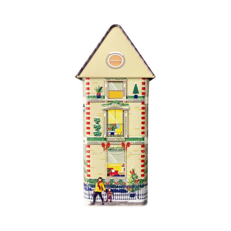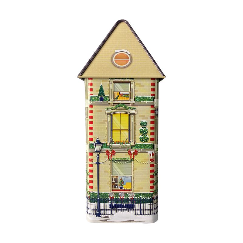 Julehus med musik og lys kagedåse